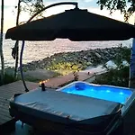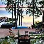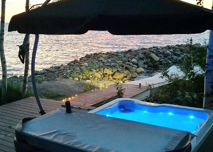 Mukava Pieni 2-4H Mokki Min 2 Vrk Saimaan Rannalla, Poreallas, Puusauna, Wi-Fi, Smart Tv, Parivuode Ja Vuodesohva Villa med 1 sovrum, som ligger 2 km från Salpa Line, erbjuder gästerna avkoppling i bubbelpool och bastu. Den strandnära villan med 1 badrum har en parkering och en terrass med utsikt över sjön.